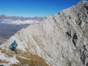 | Commento | Saliti alla Grotta dei Pagani si continua sulla traccia alla sua sinistra per poco sino ad individuare il canale con sasso incastrato da salire per arrivare in cima alla Presolana di Castione. C'e` in ometto nel punto dove conviene salire sul ghiaione, portandosi in salita verso destra ci si arriva in breve.