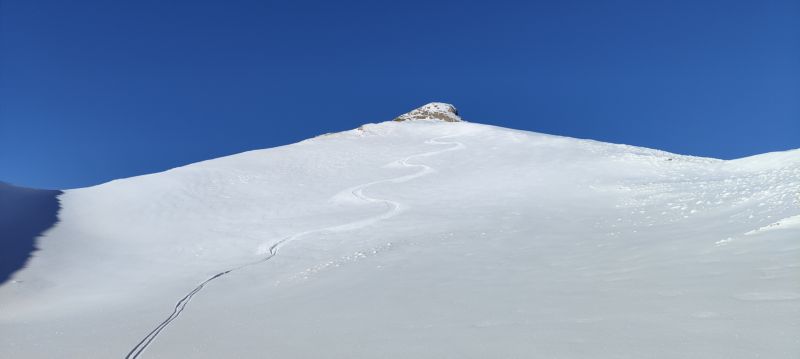 | Commento | Bellissima giornata con ambiente fantastico. Ma le vette non vanno pių di moda? Oter salgo la Punta Elgio tracciando il tratto alto. Poi sceso al rifugio Maria Luisa ripello e salgo faticosamente anche per il caldo alla bocchetta di Valrossa dove tutte le tracce e tutti gli scialpinisti vanno(non ne capisco il motivo). Scendo sino alla prima piana e vedo un signore che sale la Valle della Punta di Valrossa. Lo raggiungo parliamo un attimo e a tutta birra spingo fino alla cima dove giungo con le gambe a pezzi. Terza discesa dove la neve č abbastanza trasformata sotto con fresca sopra soprattutto dove ha lavorato il sole. Le vallette ombrose sono a rischio toccare sassi. Nel complesso bellissimo giro ed anche molto bella la sciata. |