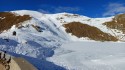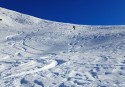 | Commento | Giretto a Foppolo. Dal rif. Montebello traversiamo a sx per poi salire al Torello. Vento freddo per fortuna solo in vetta. L'ombrosa e gelida Valcervia non ci ispira, cosė scendiamo dalla via di salita per circa 200m. Prime curve su neve trasformata; poi non appena inizia a cedere ci spostiamo nella vallettina a dx dove c'č ancora neve farinosa. Dopo il successivo breve traverso a sx, a circa q. 2250m rimettiamo le pelli e seguiamo la traccia che sale al Passo di Valcervia e quindi alla cima omonima. Discesa verso il lago Moro su bella neve pistata, poi pių variabile ma sempre buona. Stradina finale che porta al rif. Montebello in condizioni molto buone, liscia e pistata. Piste finali mooolto ghiacciate!