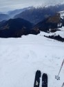 | Commento | Parto con l'idea di arrivare alla base della pala con gli sci e poi salire e scendere a piedi al Timogno. Ma dal Vodala, il versante sx sembra sufficientemente innevato e una stretta lingua di neve permette forse di arrivare quasi in fondo... Fiduciosa e ottimista, infilo gli sci nello zaino e salgo a piedi. Al primo dosso capisco che ho fatto molto bene, ma proseguo cmq a piedi, faccio prima. Le poche persone incontrate, tra cui Lidia, sono tutte a piedi. Dalla cima si vede bene che l'innevamento č pių che buono, tenendo un po' la dx, poi vedremo... Neve non ottimale visto il mancato rigelo, ma si lascia sciare. Poi mi sposto sempre pių verso sx, dove diventa bella portante. E con il centimetro di fresca sopra, mi permette davvero belle curve. Prendo poi la lingua di neve (stretta ma provvidenziale) che mi porta a 10 minuti di spallaggio fino al colletto. Pranzo al Vodala con Davide che mi ha aspettata e poi discesa dalle piste con bella neve quasi primaverile. Contenta!
