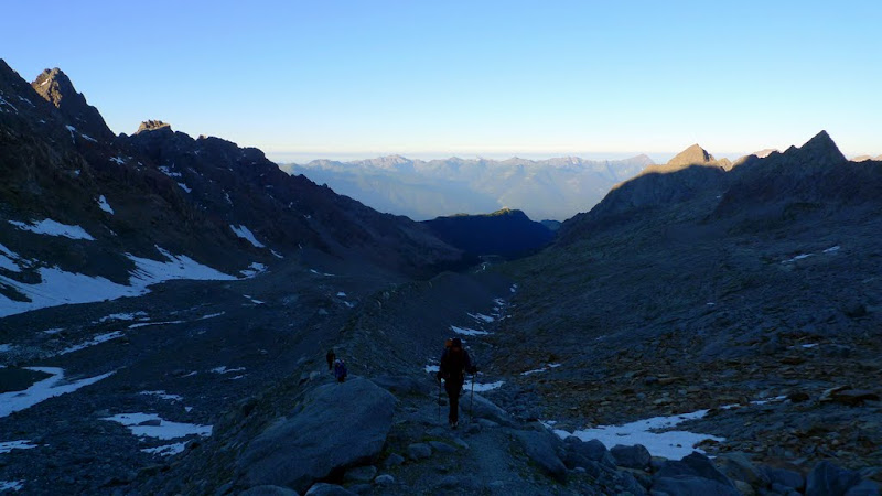 La gioia è tantissima ..e la stanchezza si fà sentire...ci si rifocilla un pò è dopo qualche foto iniziamo a scendere..in discesa,"perdiamo" paglia e luca.. rimasti dietro a dei francesi che NECESSITEREBBERO di dura orobia,visto noi orobici sugli sfasciumi del disgrazia ci muovevamo come a "casa nostra" ..